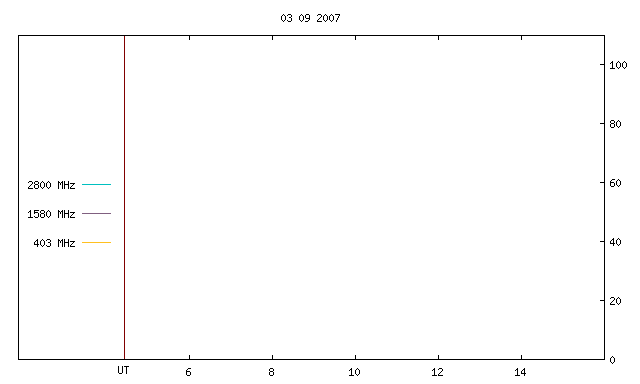 frequencies in decimeter wavelengths. The plot presents fluxes in solar